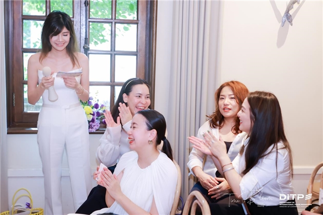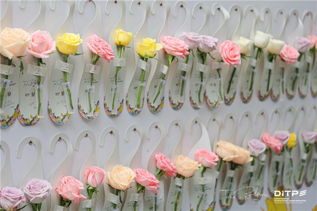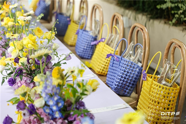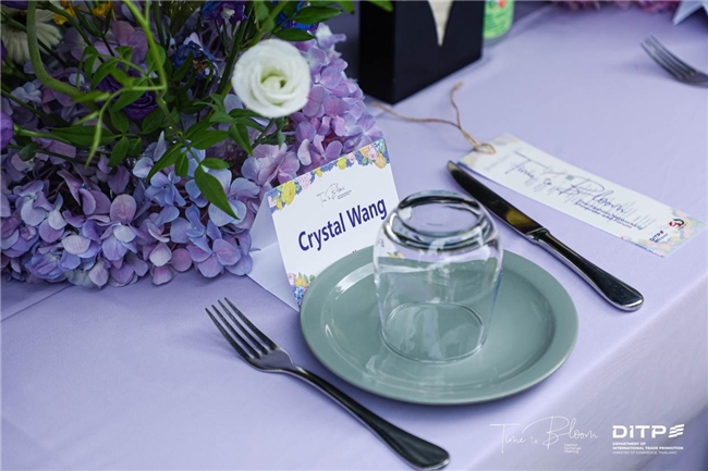 嘉宾于缀满鲜花的主题背景板前取下写有本人名字的花卡,寓意“携手绽放”,这一设计既巧妙呼应“Time to Bloom”的主题,也传递出泰国文化中自然与人文相融的美学理念。此外,嘉宾们还获赠特别定制的伴手礼,兼具实用性与纪念意义,也体现了环保可持续的生活理念。