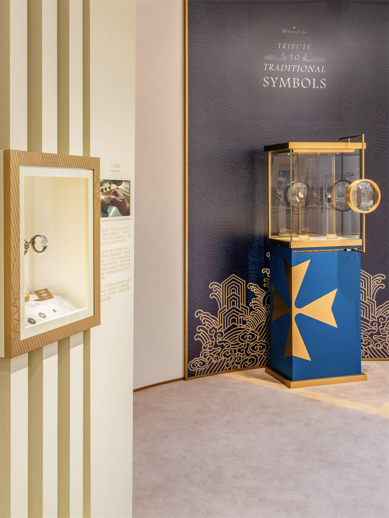 融合世界文明的时计臻品也陈设于此展区,品牌始终致力于探寻传统与创新的精妙平衡,汲取世界多元艺术灵感,并巧妙融入其精湛的制表技艺之中,迸发不竭创意灵感与制表热忱。自十九世纪与中国结缘以来,品牌积极从中国传统文化中汲取艺术灵感,并创作出一系列融汇东西文化的时计臻品,其中,近年最令人瞩目的莫过于Métiers d’Art艺术大师系列“致敬中国文化标志”腕表,其静静陈列于展柜中,可透过表盘上以现代手法重释的“海水江崖纹”,展开一场跨越时空的美学对话。