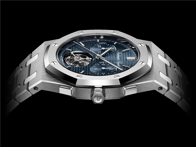 Royal Oak皇家橡树系列“Jumbo”腕表问世50余年来,首次搭载自动上链计时功能与浮动式陀飞轮双重复杂结构,爱彼研发团队必须克服重重挑战,才能将这一组合融入到“Jumbo”腕表这一经典设计的标志性超薄表身内。