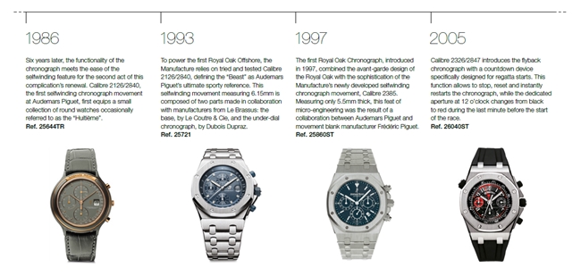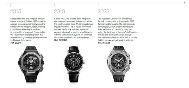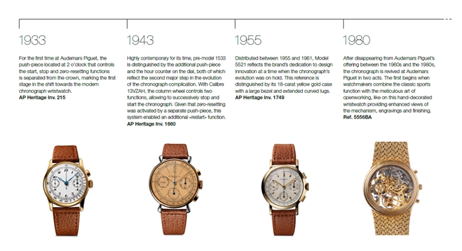 爱彼于1930年代推出品牌首批计时腕表作品,但产量极为有限(1980年前总产量仅307枚),堪称世界上最稀少的时计作品之一。彼时,品牌的每款时计皆为孤品之作,直至1950年代才引入标准化生产的“款型”概念。