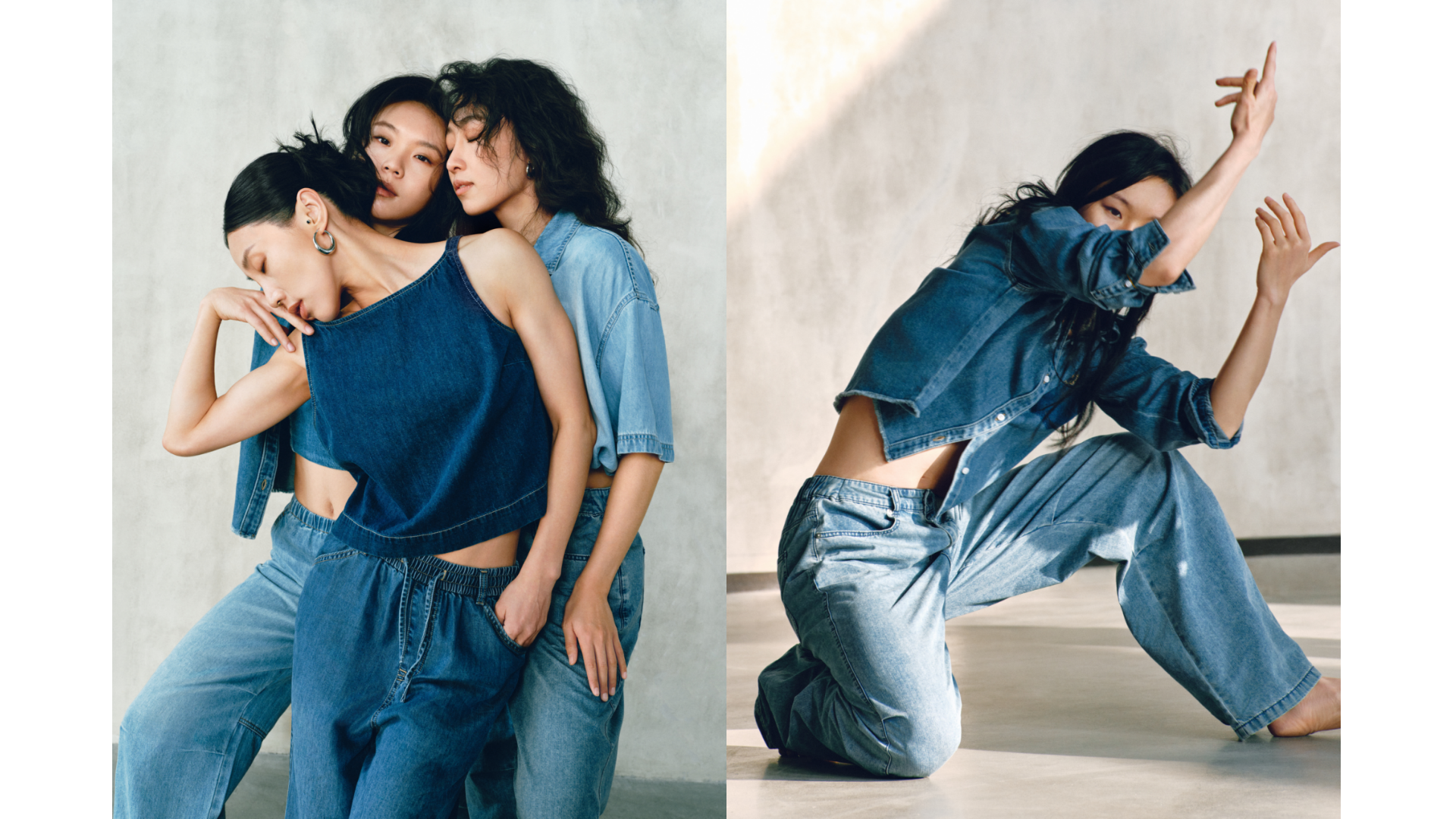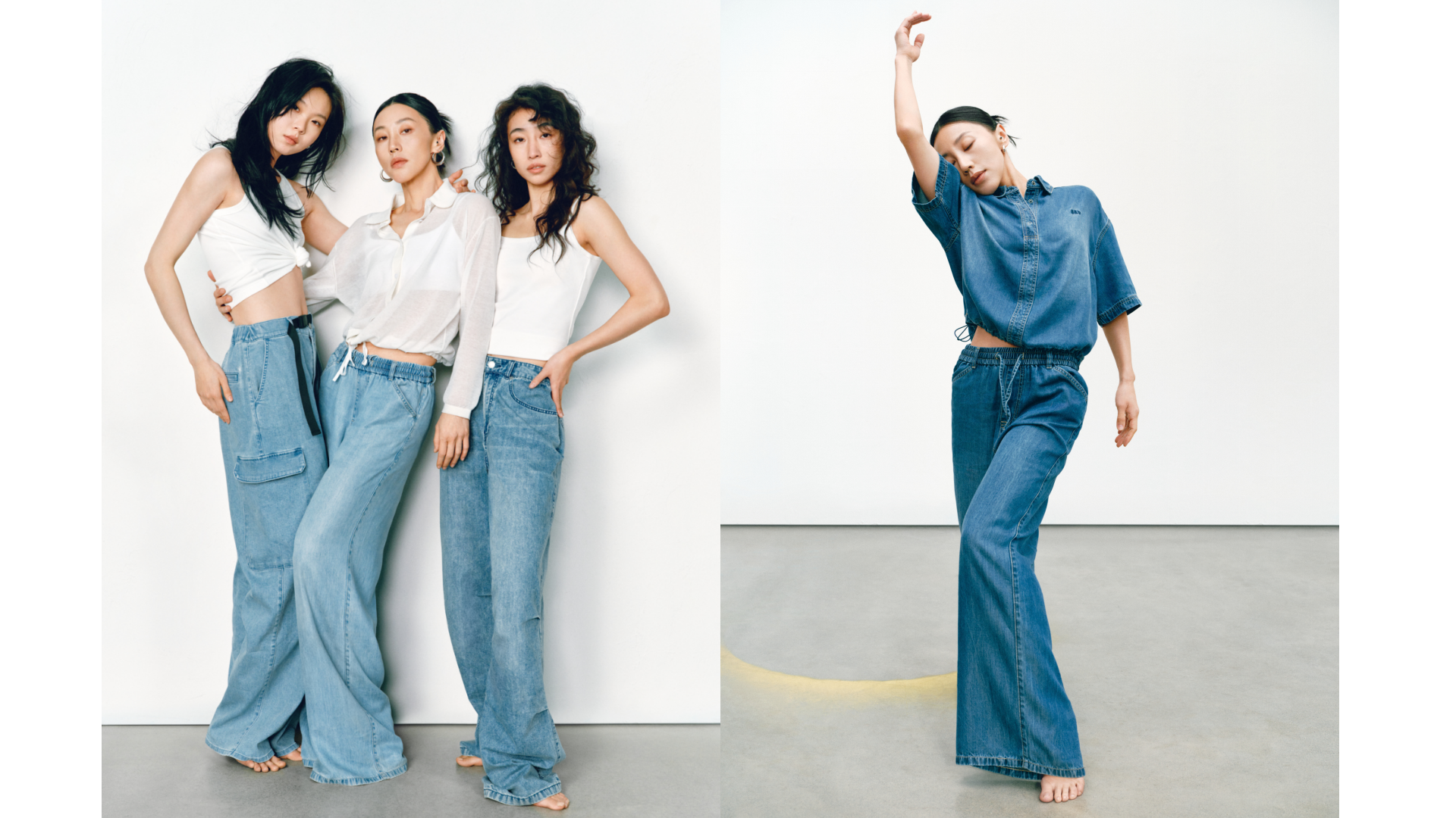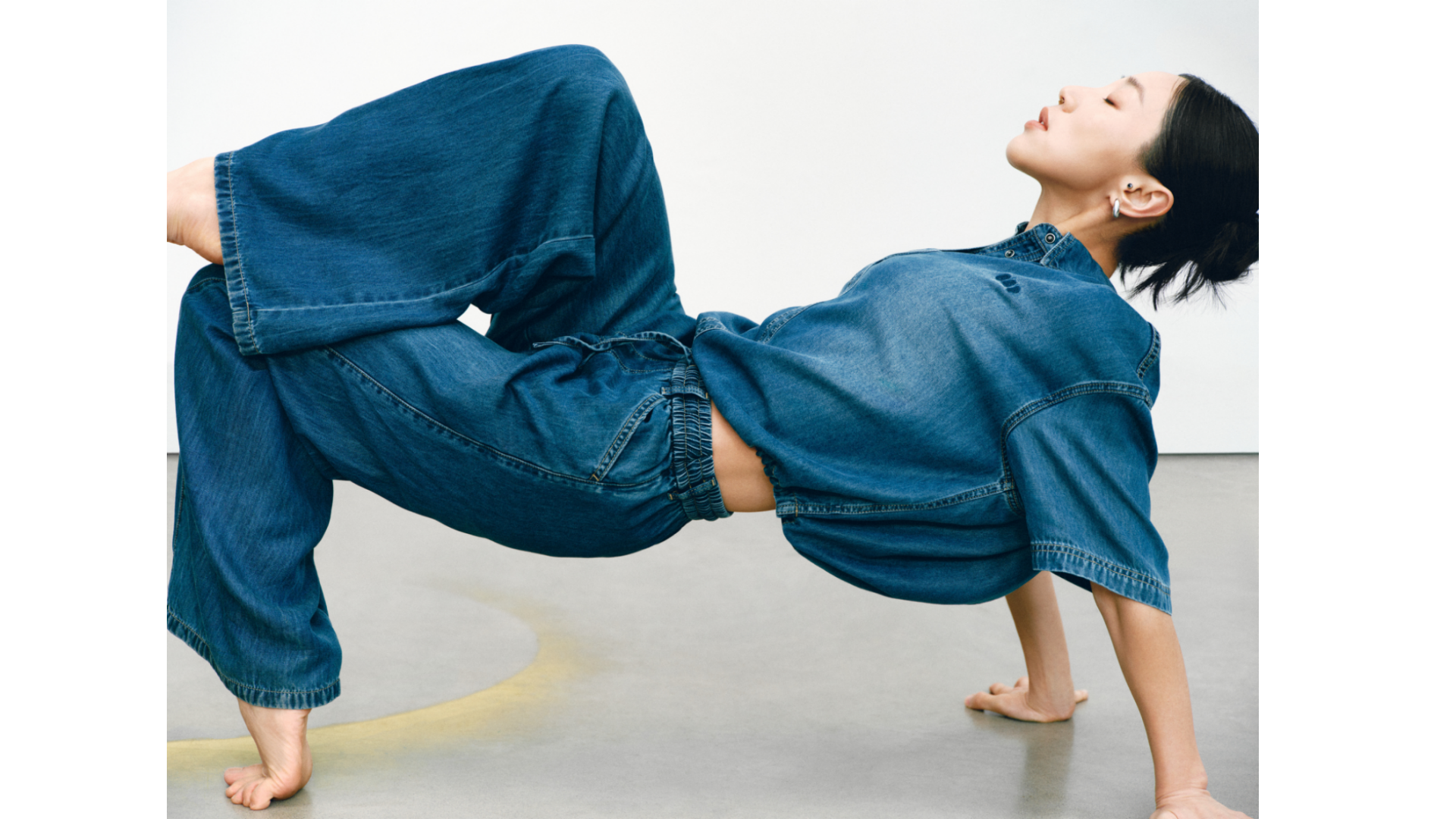 GAP的“留白”美学不仅停留在精神维度,更巧妙注入两大产品系列:天丝™ 纤维牛仔(Tencel™ Denim)系列与经典卡其(Khaki)系列。伴随舞者的灵动演绎,天丝™ 纤维牛仔(Tencel™ Denim)系列服饰呈现出宛若“第二层肌肤”的细腻触感与垂坠性。打破了传统牛仔“硬朗”、“束缚”的刻板印象,在物理层面实现了真正的“留白”:以丝滑垂顺的质地,打造“会呼吸的牛仔”,为肢体预留出自由舒展的空间。