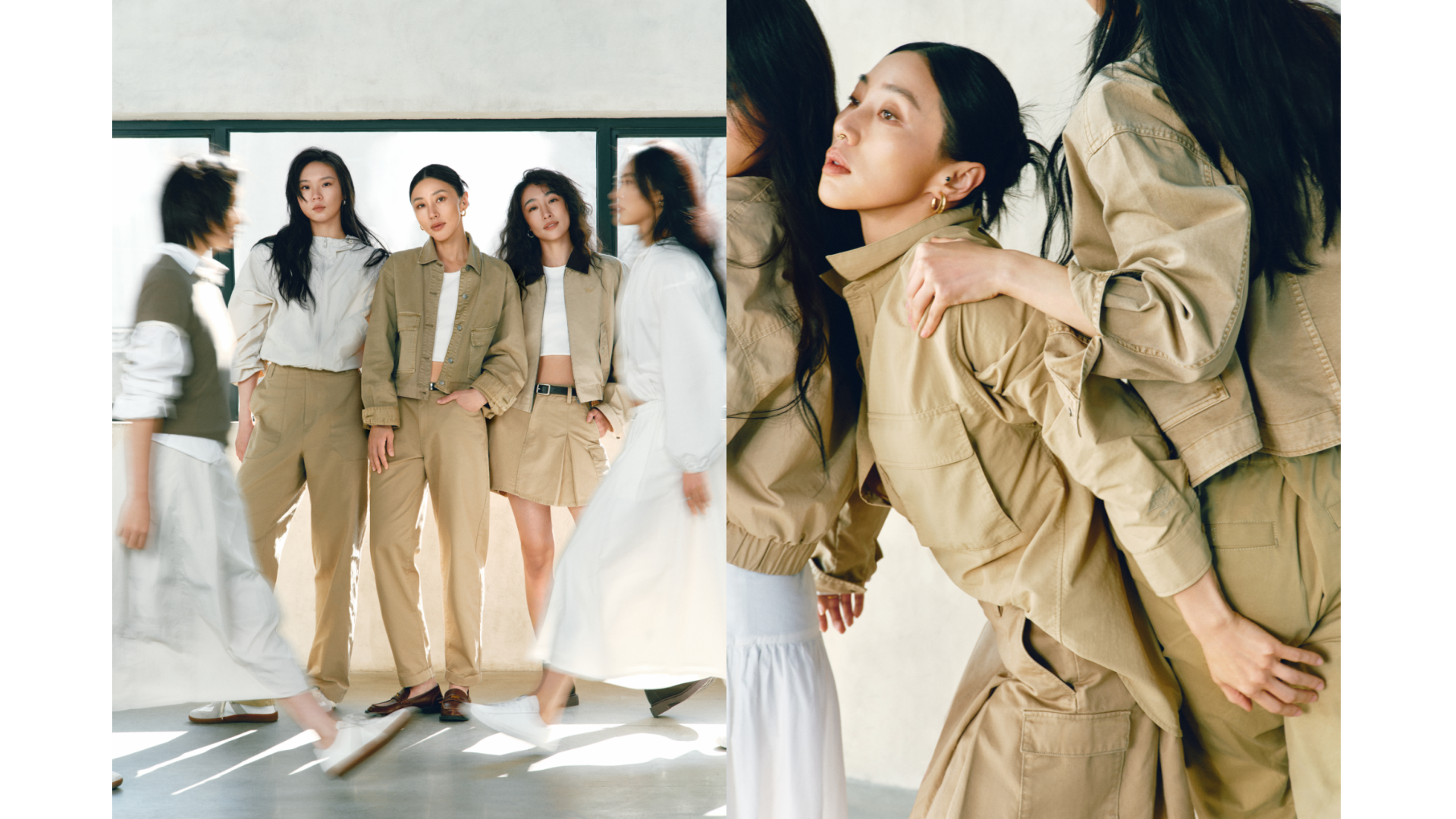 与此同时,卡其(Khaki)系列服饰依托现代舞的艺术张力与纯粹意境,使都市卡其(Urban Khaki) 脱离传统的“硬朗工装”标签,以干净的视觉语言、利落的廓型和实用性的设计,成为极具质感的Clean Fit美学代表。其纯粹的极简设计不仅能从容应对城市多元场景的切换,更消解了繁复的穿搭焦虑,让女性在日常的每一个瞬间,都能感受到为生活“留白”的轻盈与自在。