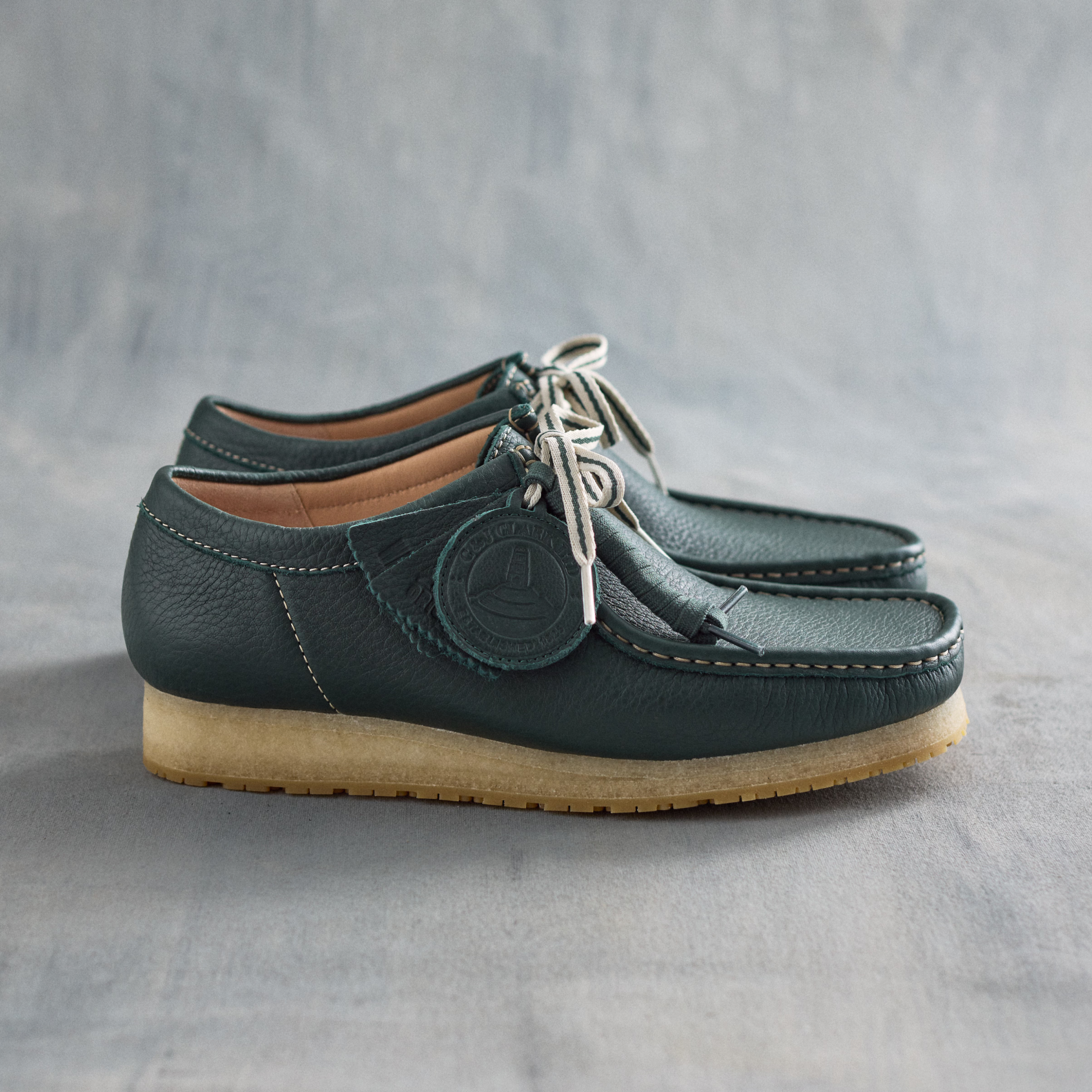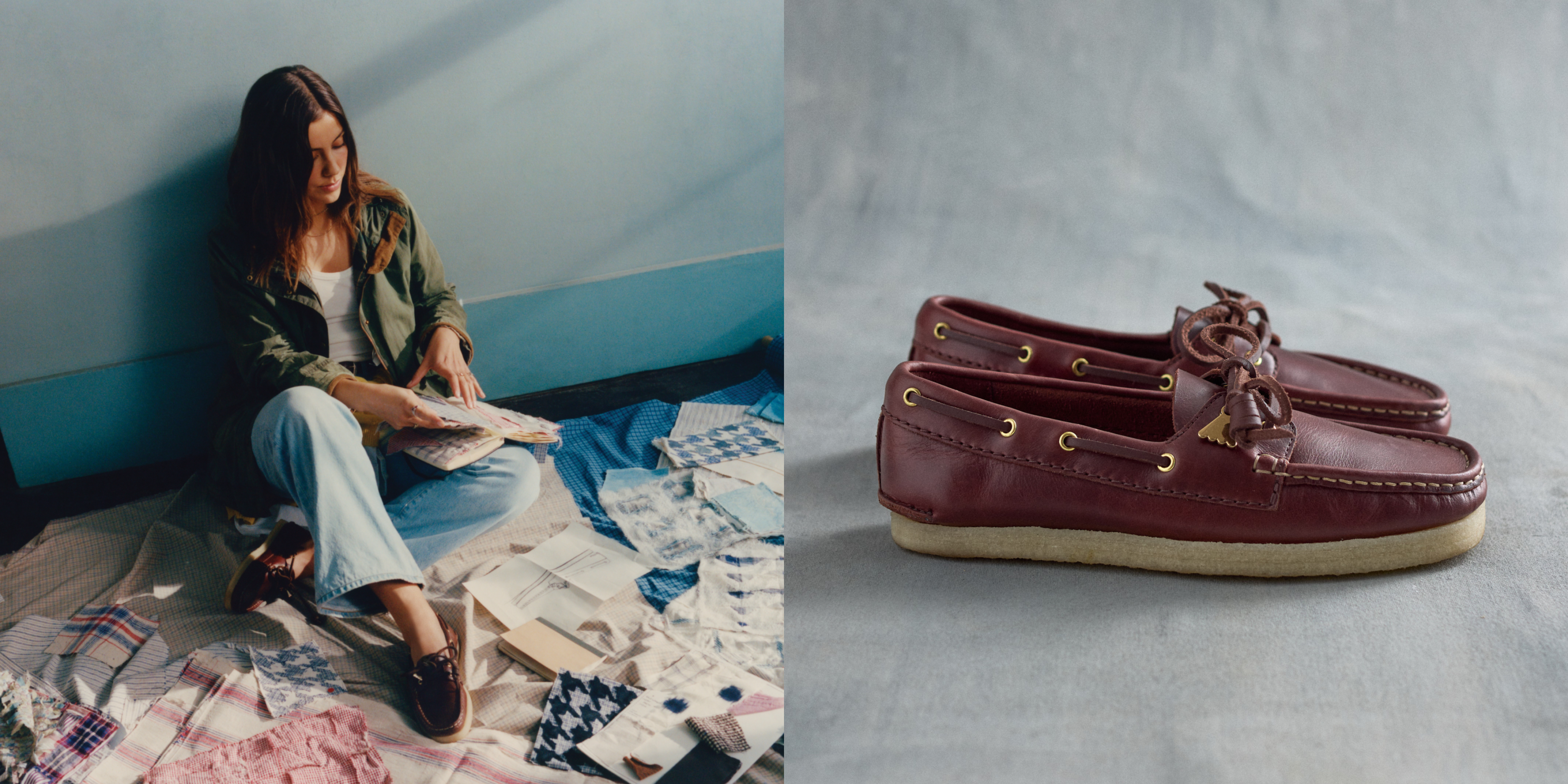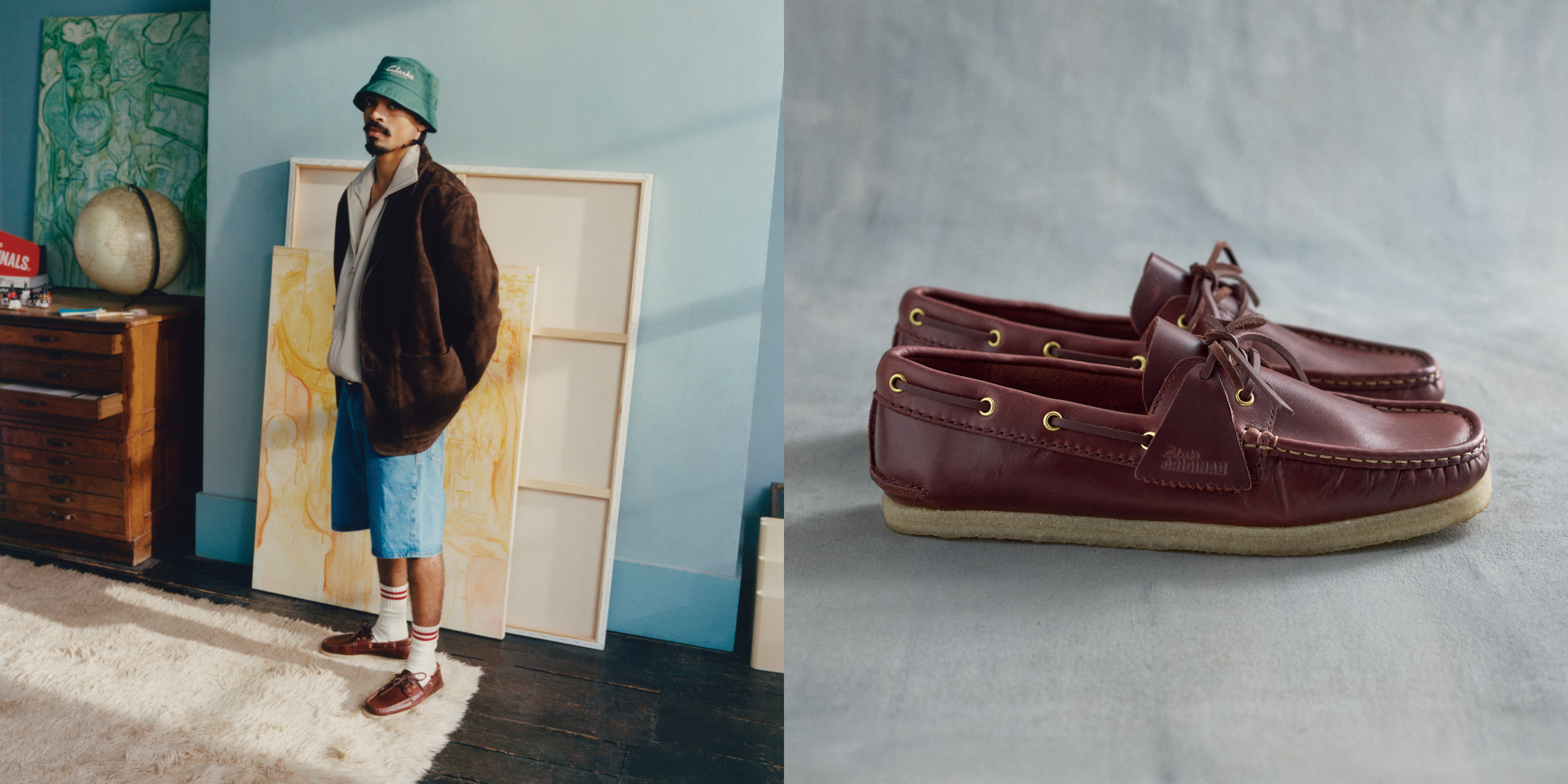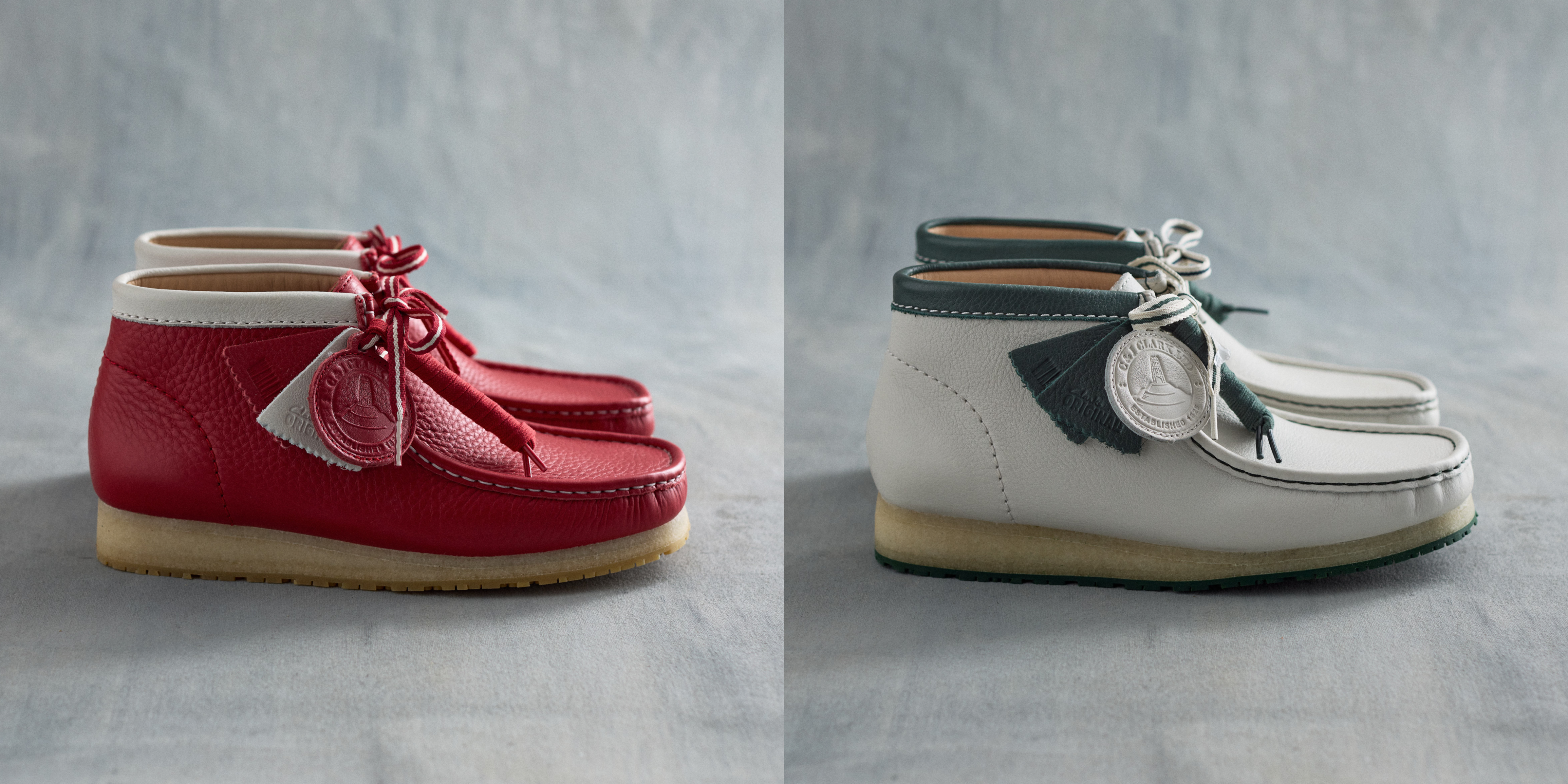 男款系列诠释了考究的松弛感。标志性的Wallabee™袋鼠鞋革新性地采用麂皮条纹鞋面,推出蓝绿条纹与枫木条纹两款,直接致敬常春藤联盟风格。鞋款保留了完整的手工缝制莫卡辛结构,随鞋附赠白色与条纹两套鞋带,轻松切换多种场景。Wallabee™ RB袋鼠鞋以深邃绿色皮革呈现,赋予鞋面如皮革封套般的光泽与精致触感;Wallabee™ Boot RB则以靴型亮相,红色与白色高级皮革搭配对比色踝领,将慵懒廓形拉伸得更为利落摩登。